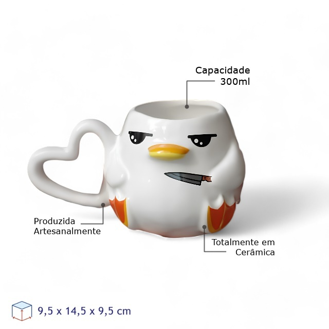 Caneca 3D Psicopato 300ml em Cerâmica Colecionável Amarelo e Branco