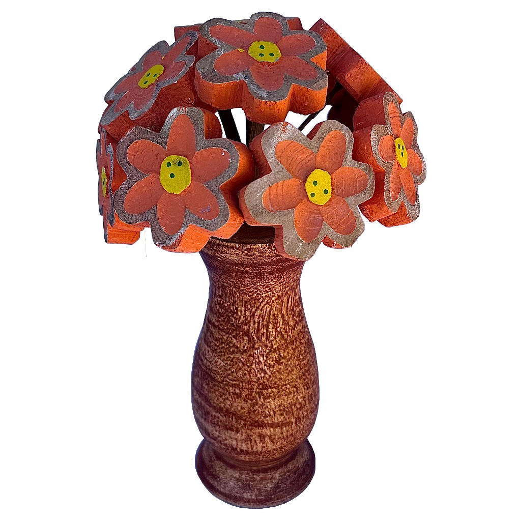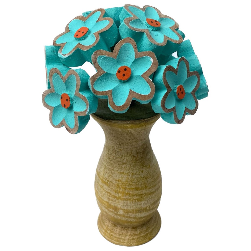 Encante seu ambiente com esse lindo arranjo artesanal de flores em madeira! As flores são pintadas à mão com cores vibrantes e delicadas, acompanhadas por um vaso rústico que dá um charme especial à peça.