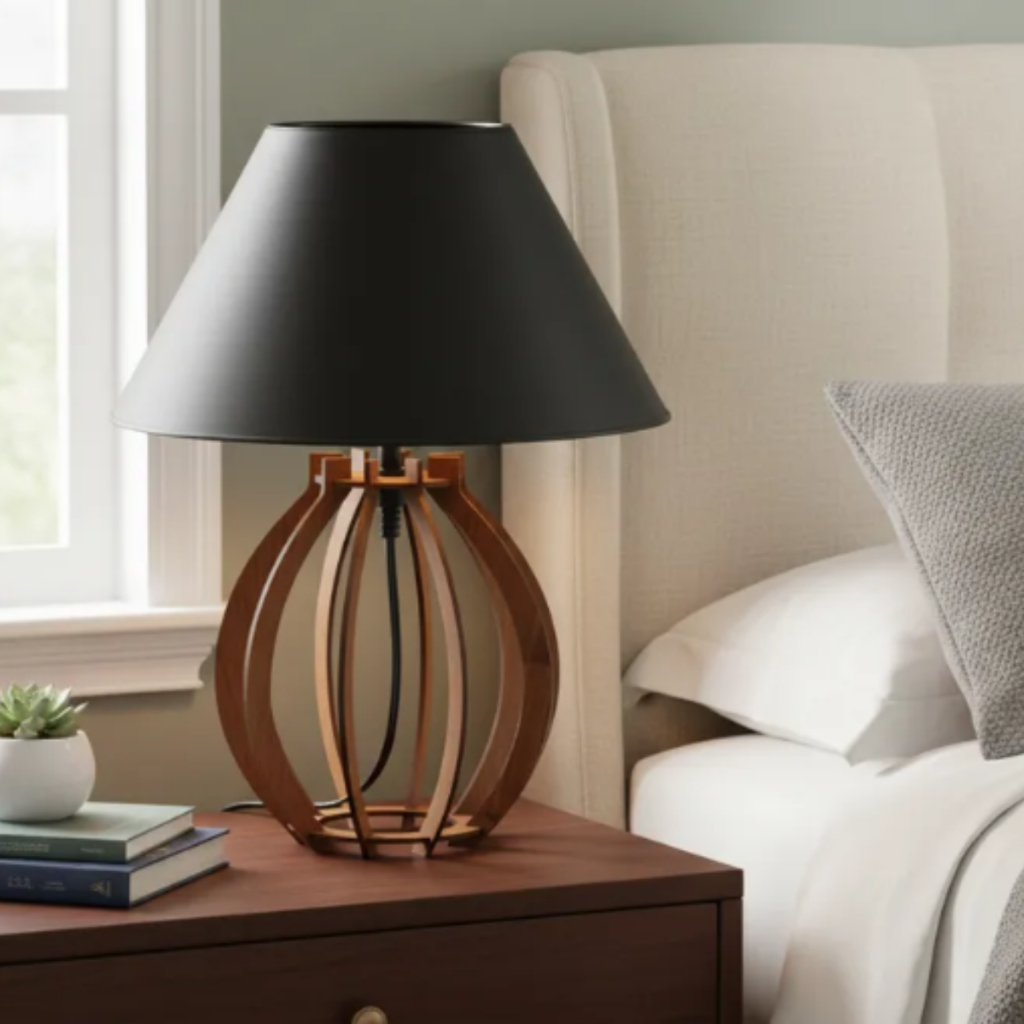 Nosso abajur combina design moderno e minimalista com materiais de alta qualidade, tornando-o perfeito para diversos ambientes, como: